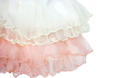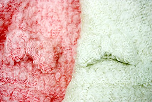 身頃はぽこぽこニットソー、凹凸感のあるニットのようなカットソー素材です。裾はシフォン素材のフリルになっています。女の子らしいピンクとオフホワイトの配色が可愛い!