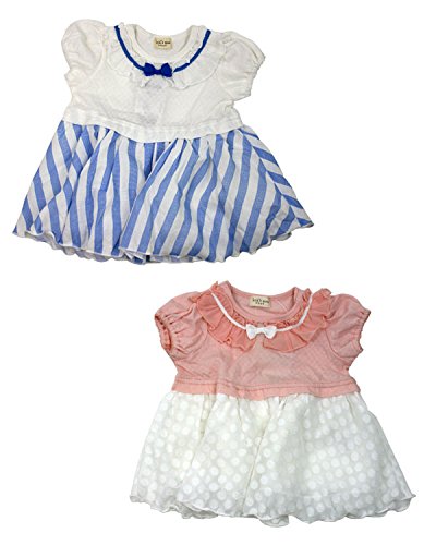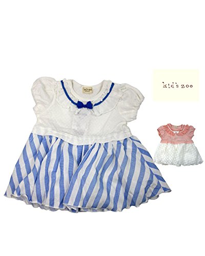 フリフリのシフォン素材のフリル衿にリボンのモチーフ、丸いパフスリーブのお袖にふんわりスカート。女の子らしいチュニックワンピースです!ホワイトは夏らしく爽やかなブルーのストライプ柄のスカート、ピンクはピンクの身頃に白のドット柄のスカートで女の子らしい!