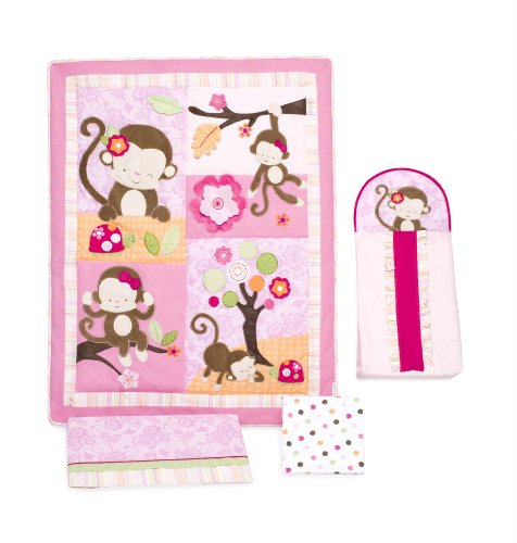 Kids Line 4 Piece Crib Bedding Set, Miss Monkey (Discontinued by Manufacturer)
