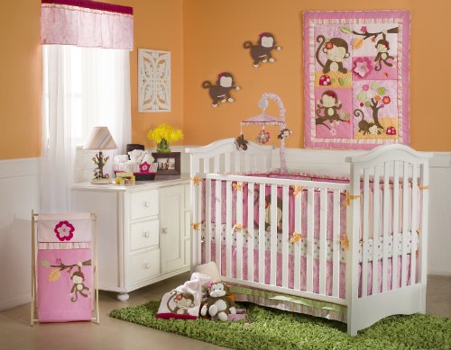 Kids Line 4 Piece Crib Bedding Set, Miss Monkey (Discontinued by Manufacturer) by kidsline