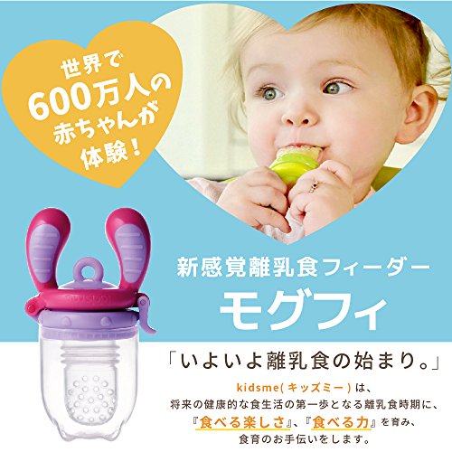 備考:★赤ちゃんが自分の意志で口に持って行って、おしゃぶりのような感覚で新しい味を体験する事ができるkidsmeモグフィは