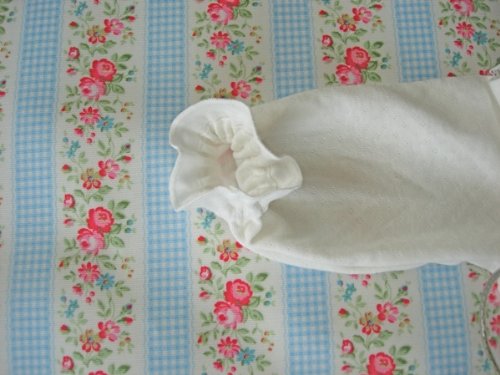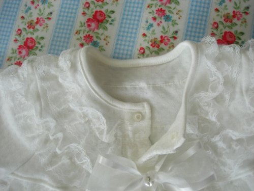 - ドレスは前裾のみに、可愛いラッセルレースをふんだんに使ったかわいらしいデザインです、後身裾にレースがないので、そのまま寝かせられます。