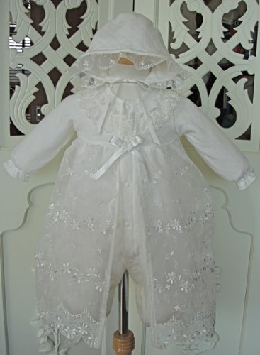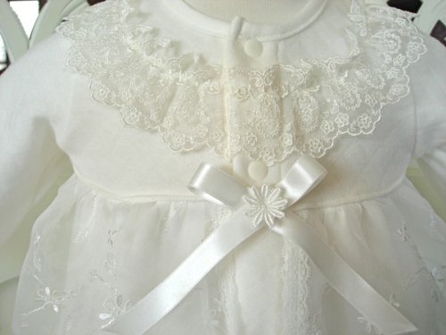 - 退院、お宮参りなどのお披露目に最適なセレモニーコンビドレス、フードと2点セットです!マーガレット柄レースが可愛い冬用セレモニーコンビドレスです!
