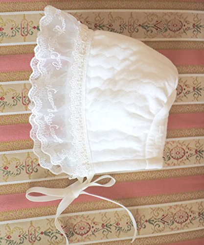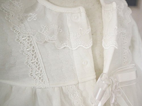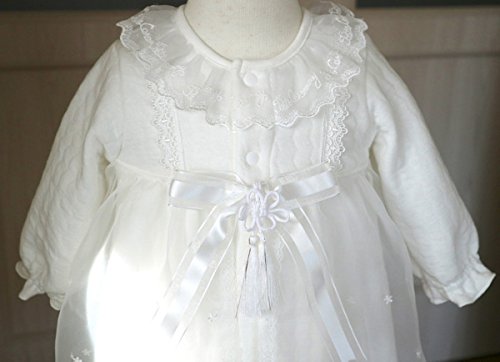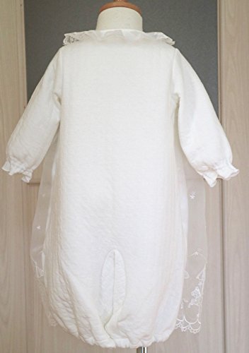 - ドレスは前裾のみに、可愛いメリーゴーランドレースをふんだんに使ったかわいらしいデザインです、後身裾にレースは無くそのまま寝かせられるタイプです。 素材はとても柔らかくて暖かい厚地のニットキルトです。フードもおそろいに仕上げました。