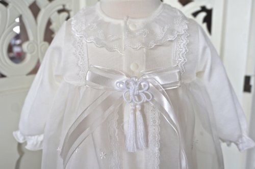 - ドレスは前裾のみに、可愛いメリーゴーランドレースをふんだんに使ったかわいらしいデザインです、後身裾にレースは無くそのまま寝かせられるタイプです。
