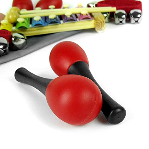 - 木琴1個、プラスチックマラカス2個、卵のシェーカー2個と手首の鐘2個が含まれています