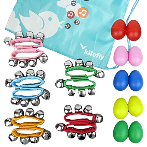 [キロフライ]kilofly楽器のリズムおもちゃバリューパック10マラカス&10手首の鐘