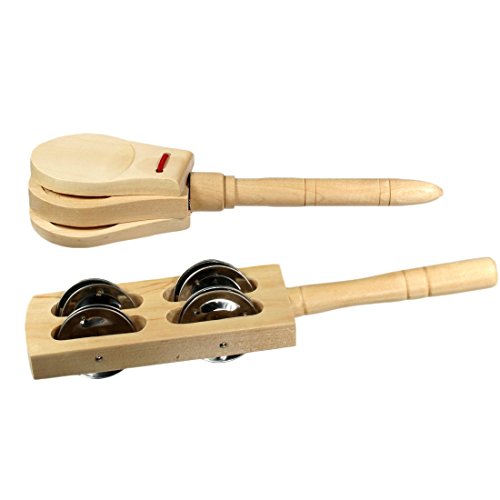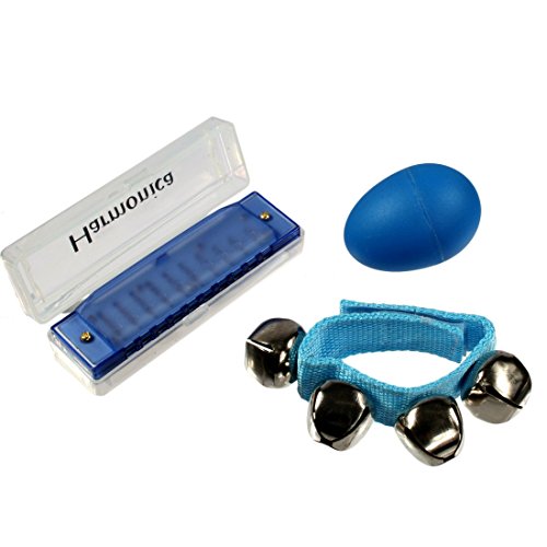 - ハーモニカ1つ、タンバリン1つ、木製の柄のカスタネット1つ、タンバリンのジングルスティック1つ手首の鐘2つ、プラスチック製のカスタネット2つと卵シェーカー2つを含めます