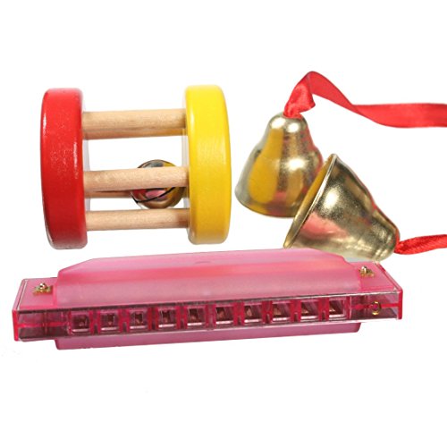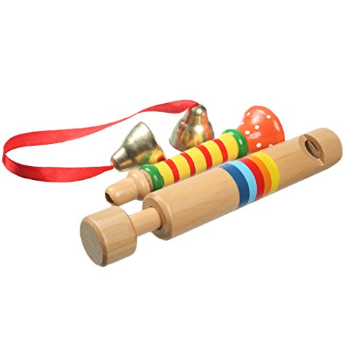 - 木のギロ1つ、木製のガラガラ1つ、木のフルート1つ、ベルに触れ1ペア、ハーモニカ1つ、マラカス2つと木のトランペット1つを含めます