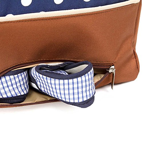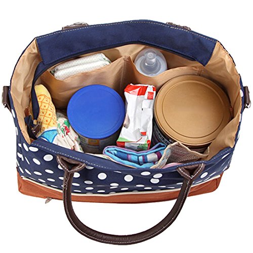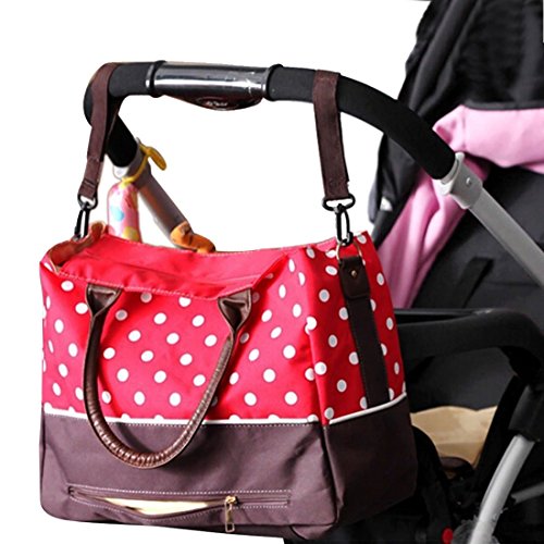 - トップファスナーおむつバッグ、ショルダーバッグストラップ、ベビーカーぶら下げ一対のフック、ジップトップのボトルホルダー、おむつ交換パッドと小さなポーチ付き