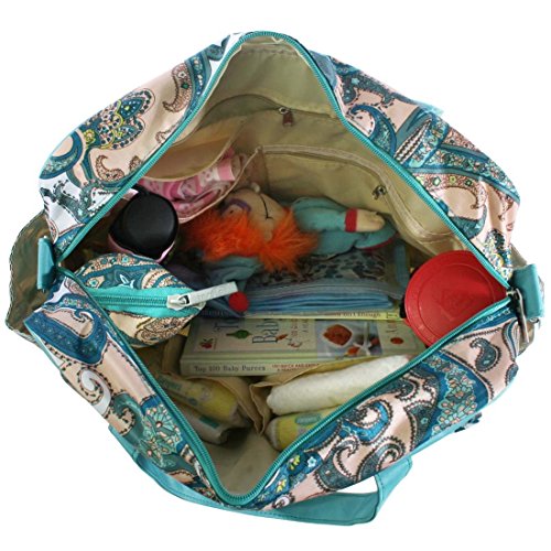 - トップファスナー大きなおむつバッグ、ショルダーバッグストラップ、絶縁されたボトルホルダー、おむつ交換パッドと小さなポーチ付き