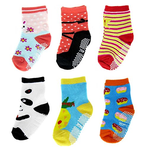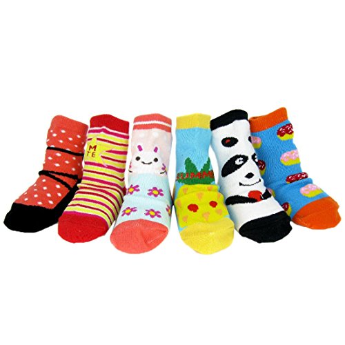 [キロフライ]kiloflyベビーノスキッドコージーソフトソックス[6ペアセット]、パンダ&ダッキー、女の子向け、6から18ヶ月