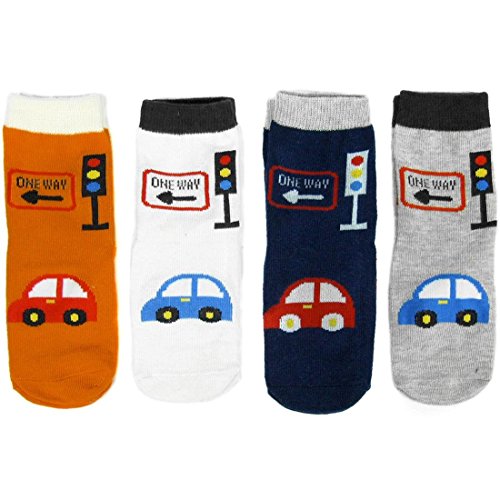 [キロフライ]kiloflyベビーノスキッドコージーソフトコットンソックスバリューパック、[4ペア、ホワイト、グレー、オレンジ、ダークブルーのセット] 、ビートル、12 - 24ヶ月