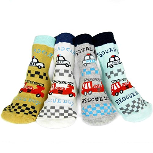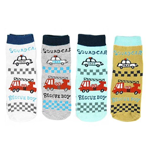 [キロフライ]kiloflyベビーノスキッドコージーソフトコットンソックスバリューパック、 [4ペア、ホワイト、グレー、オレンジ、ライトブルーのセット] 、救助ボーイ、12 - 24ヶ月