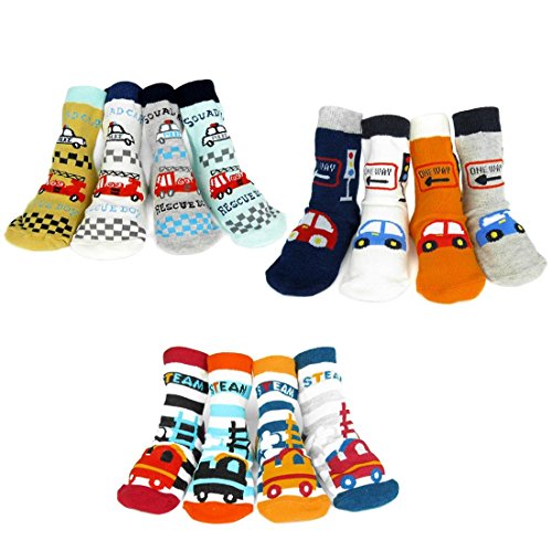 [キロフライ]kiloflyベビーノスキッドコージーソフトコットンソックスバリューパック、[12ペアセット]、ビートル、電車、レスキューボーイ、12から24ヶ月