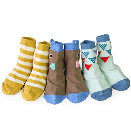 [キロフライ]kiloflyベビー幼児ボーイズノスキッドソフトコットンソックスバリューパック、3ペア、12から24ヶ月