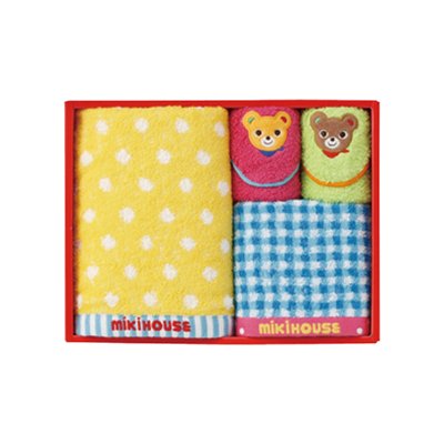 - フェイスタオル×1(750×340mm)、ハンドタオル×1(350×340mm)、ミニタオル×2(200×200mm)(材:綿100%)