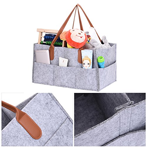 おむつバッグ 収納バッグ ママバッグ 携帯用 折り畳み式 大容量 小物入れ 仕切り付 ふくろう フェルト製品 グレー