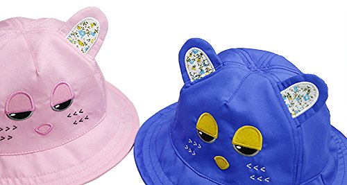 kinokoo ベビー用ハット キッズ帽子 赤ちゃん帽子 つば広 紫外線 UVカット 日焼け止め 夏 くま耳 男の子 女の子 可愛い アウトドア 通園通学 44-50cm 標識クロス付き (46, BL)
