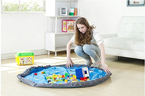 kishiya おもちゃ収納袋 お片付けマット プレイマット 防水シート 収納バッグ 超大 (青)