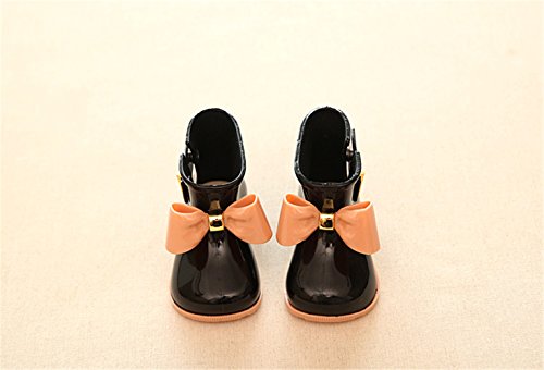 Kishiya子供 短靴 女の子 ちょう结び カワイイ 雨靴 通気  (16.8cm, ブラック)