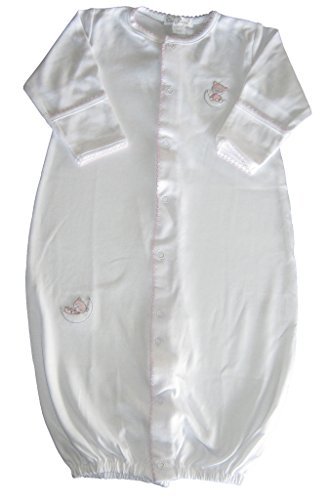 Kissy Kissy女の赤ちゃん服柔らかいコットンKissy Kissy幼児ホワイトコンバーチブルガウンピンク刺繍Bears正面にはありません。スナップは、スナップにガウンまたはplaysuit。袖のフォールドオーバーして保護する部分をカバー手が表示されます。