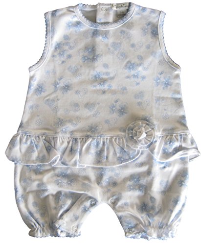 Kissy Kissy女の赤ちゃん服柔らかいコットンKissy Kissy幼児ホワイトノースリーブショートplaysuitカバーされた青色で花柄プリントの周りにフリルを中央]をクリックします。