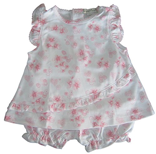 Kissy Kissy女の赤ちゃん服柔らかいコットンKissy Kissy幼児ホワイトノースリーブスーツカバーピンクのフラワープリントの周りにには、フリル付きのトップです。のブルマーが一致したフラワープリントが施されています。