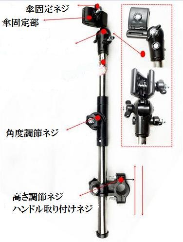 - ベビーカー・自転車・電動自転車・車椅子・バギー用などの傘固定用スタンドです。
