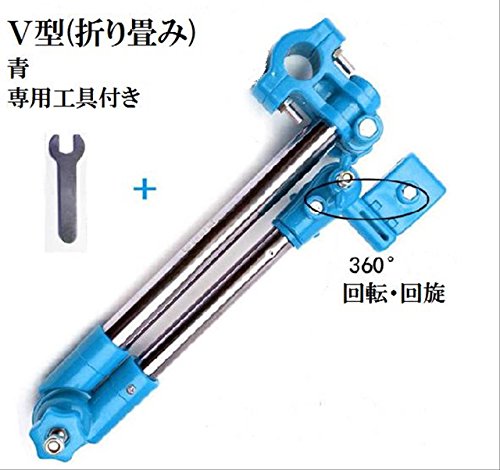両手 が 使える ベビーカー 自転車 車椅子 バギー 傘 日傘 スタンド 工具付き V型 (青)