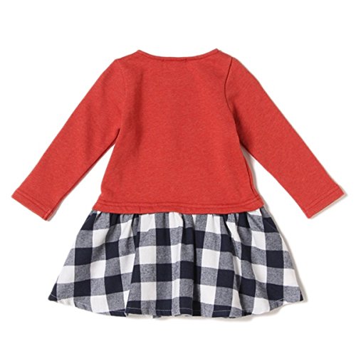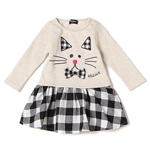 クレードスコープ(キッズ&ベビー)(kladskap) ネコデザインミニ裏毛×チェック柄切り替えワンピース【シナモン/90】
