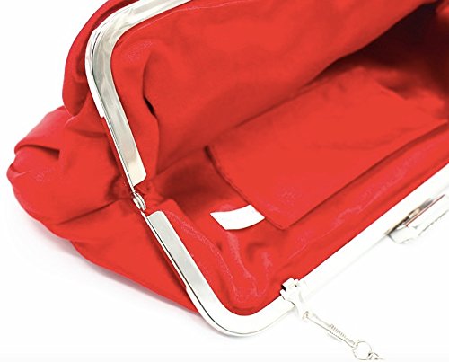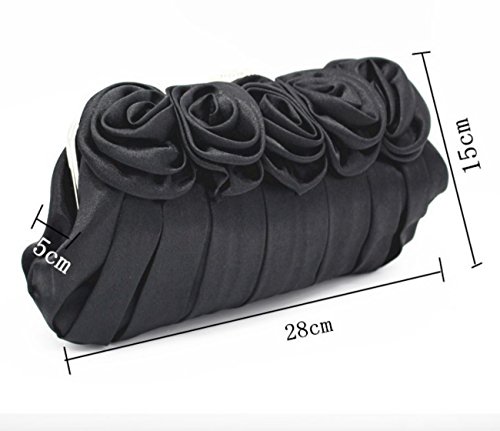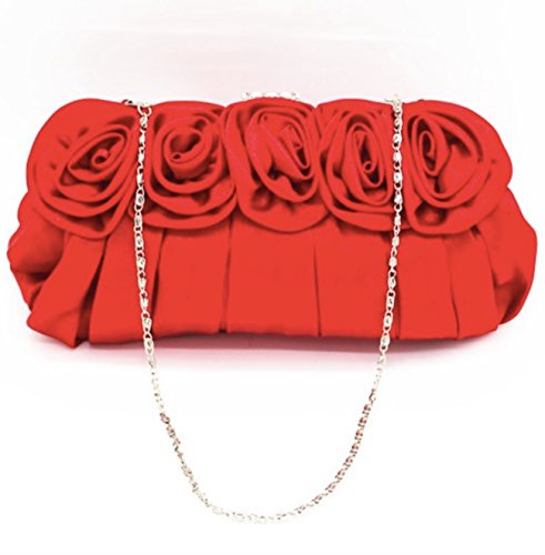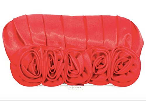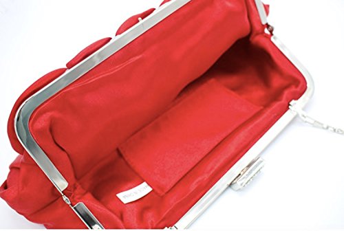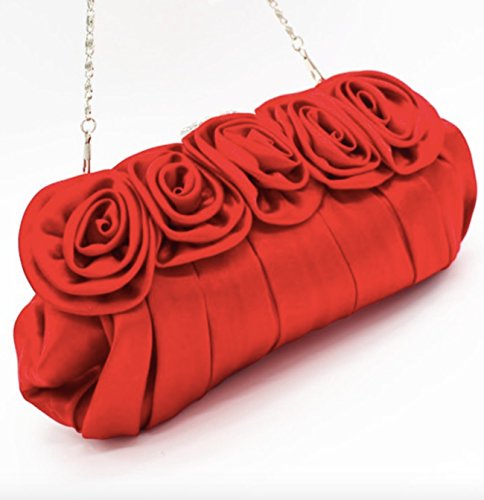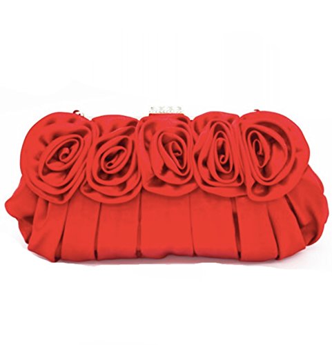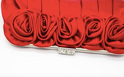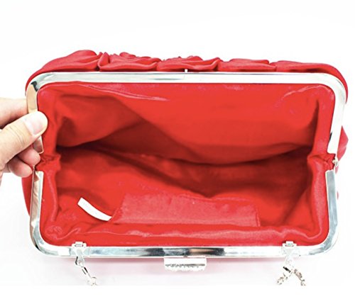 パーティ バッグ 結婚式 レディース クラッチ ショルダー バック バラ 薔薇 がま口 サテン 黒 レッド (レッド)