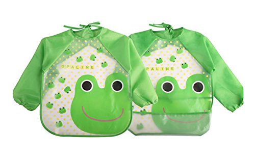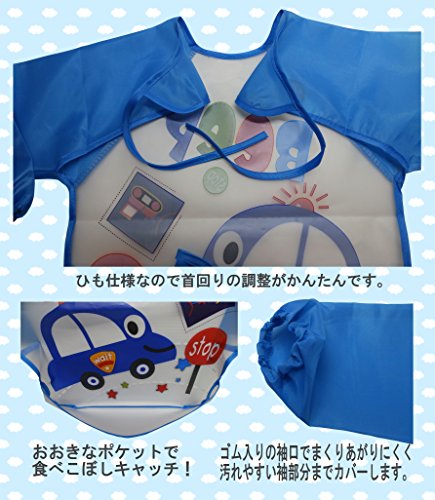 - ひも仕様なので首回り、おなか回りの調整が簡単にできます。長袖タイプなので、お洋服の肩や袖を汚れから守ってくれます。
