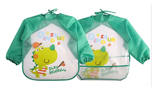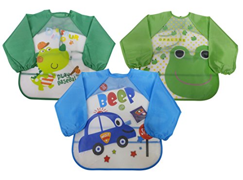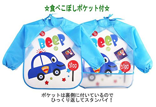 ベビー 食事エプロン 長袖 防水 幼児 スタイ ポケット付 大きめサイズ 3枚セット (02 B柄セット)