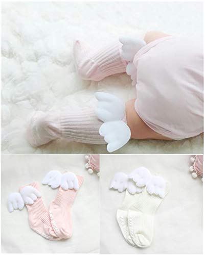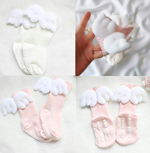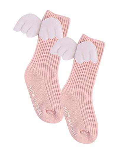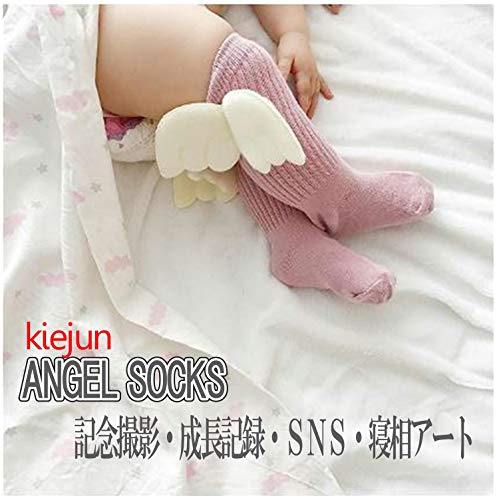 [kiejun] ベビーソックス 天使 羽 寝相アート 記念撮影 赤ちゃん 女の子 滑り止め付 くつ下 ハイソックス (1 ピンク 11~13cm)