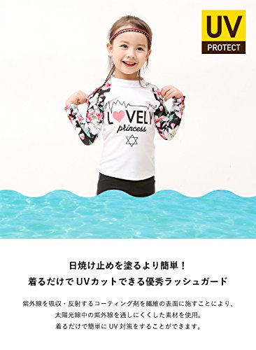 UVカット素材のおしゃれな花柄切り替えデザインのラッシュガードで日焼けからお子様を守ります。 海だけでなく、プール・キャンプ・ハイキング・バーベキュー・スポーツ・外遊びなどでもご使用いただけます。 水中でも保温効果が高く、また陸に上がった時もすぐ乾きます。