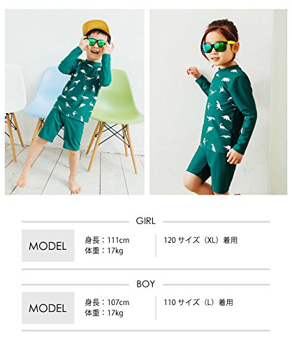 恐竜柄 ラッシュガード 上下セット (M, ピンク) tlp013pi100