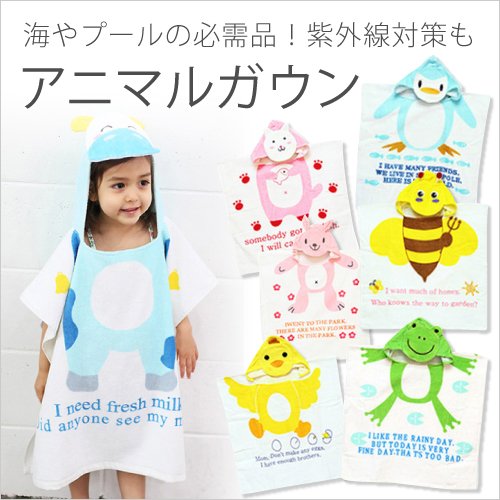 プールや海の必需品!レジャーで大活躍のタオルガウン(ポンチョ)です。夏のレジャーはもちろん、プールサイド、海での紫外線対策や海やプールで冷えて寒くなった時にもにサッと羽織れて便利。