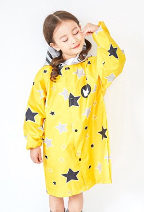 大き目なスター柄のお洒落なレインコート。雨の日が楽しくなる♪