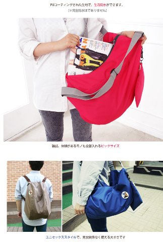 ☆ Easy to carry bag ☆ 商品情報 ☆ ■Easy to carry bag:1個 54cm×27cm ■収納ポーチ:1個 18.5cm×17.5cm カラー ■Blue/ブルー ■Red/レッド ■Beige/ベージュ ■Sky/スカイ オススメの ポイント ■ ショルダーバッグ、バックパック、クロスバッグの3つのスタイル ひもの長さを自由に変えることができ、肩掛けにすることも背負うこともできます。 自分なりのスタイルが自由に演出できます ■ カバンとポーチのセット POLY素材の軽いバッグに、同色のポーチが付いてきます。 使わないときは折りたたんでポーチに入れれば、18.5cm×17.5cmととってもコンパクトなサイズに。 メインバッグとしてはもちろん、荷物が増えたときのサブバッグとしても使えます。 ■ ビックサイズでママにもおススメ 54cm×27cmのビックサイズで、荷物が多いママにおススメ リュックスタイルやななめがけのショルダースタイルにすれば、両手が空いて便利です。 ママへのプレゼントにも最適です☆ ■ 選べる4色&ユニセックススタイル ブルー、レッド、ベージュ、スカイの4色。 デザインもシンプルなので、男女問わずお使いいただけます。 ■ 生活防水 PUコーティングされた生地で、生活防水対応です。 ※完全防水ではありません。 ■ いつでもどこでも使えるバッグ デイリーバッグでも、旅行の時でも、ショッピングのときでも軽く、便利に使えます。