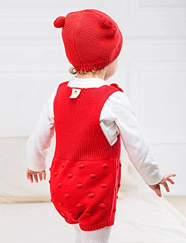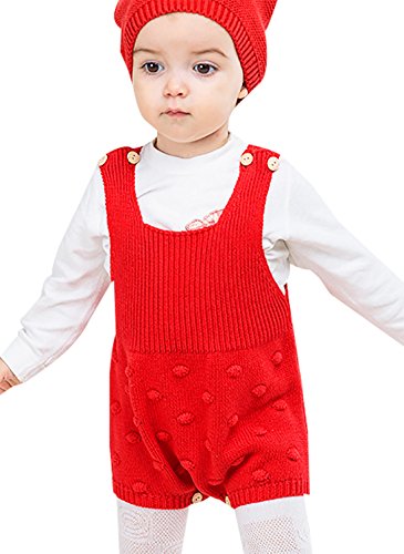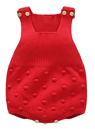 kookoohouse 新生児服 ニットロンパース ベビー服 ニット コットン カバーオール 綿 無地 レッド 秋冬 サイズ80 12ヶ月-18ヶ月