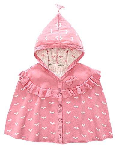 kookoohouse ポンチョコート フード付き ニットマント 暖かい 子供服 女の子 冬 110cm 防寒対策 アウター 蝶結び付き ピンク L