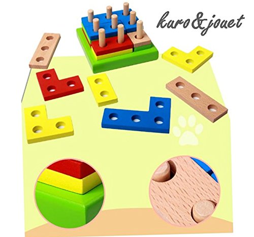 [kuro&jouet] ちょっとかわった楽しい形の 木製 立体 パズル 知育 教育 型合わせ はめ込み 幼児 男の子 女の子