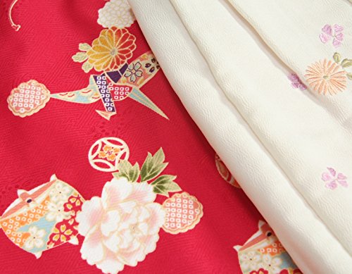 - 重ね衿と刺繍半衿が初めから付いていて面倒な肩上げと腰上げも初めからしてある楽々仕様です。身長95cm前後のお子様であればお子様の体の厚みにもよりますがお直しなしで着て戴けると思います。