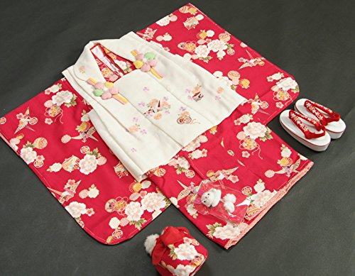 - 古典感覚を残しつつ現代調にアレンジを加えるリョウコキクチブランドの七五三3歳御祝着に最適な女の子被布セットです。エンジに近い落ち着きのある赤地の御着物にベージュの被布を合わせたお色目になります。