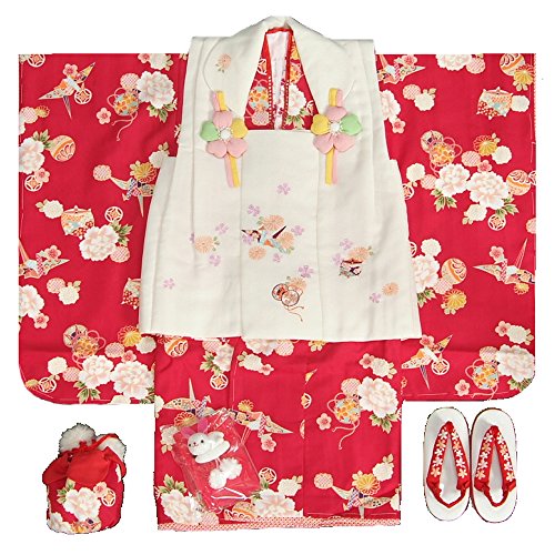 七五三 着物 3歳 女の子 被布セット リョウコキクチ 赤 桜 被布白ピンクぼかし刺繍使い 雛祭り 753 足袋付きの12点フルセット