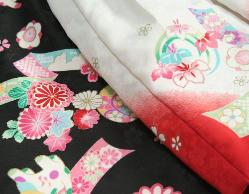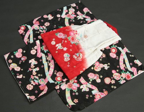 着物 黒色、被布 白×赤切替