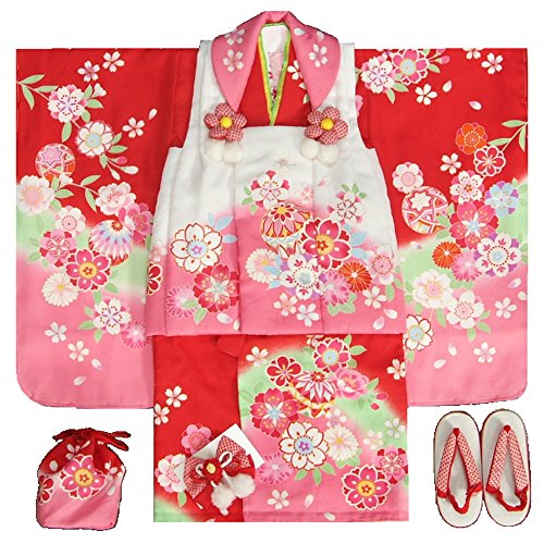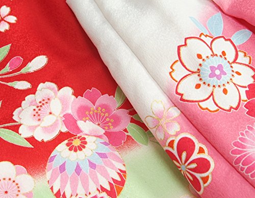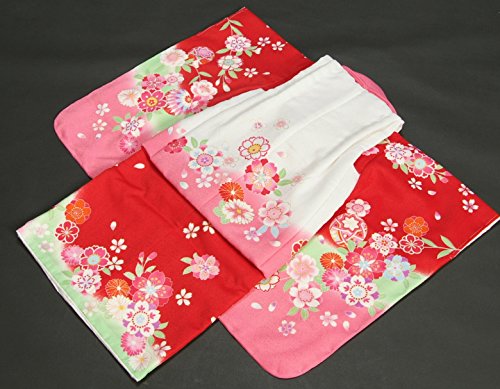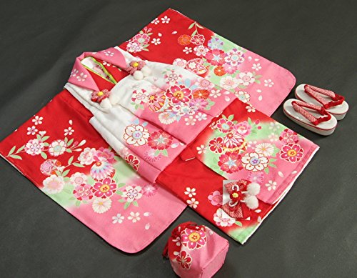 - 赤地色の御着物とピンク白染め分けの被布を組み合わせた陽気な天使ブランドの七五三着物3歳用被布セットです。着物は赤色を基調にピンクやエメラルドグリーンなどの染め分けが入り被布着も白とピンクの染め分けになったかわいらしい配色になります。