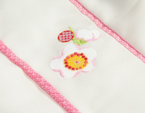 - 御着物には桜や捻り梅、牡丹などの華々が鮮やかに彩ります。被布には刺繍使いの桜があしらってありかわいいだけじゃなく豪華さもあります。