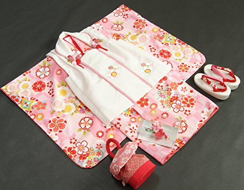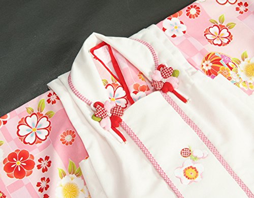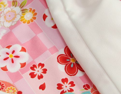 - 濃淡ピンクの市松色に白の被布を合わせた非常にかわいらしいマユミブランドの七五三着物3歳被布セットです。